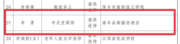 近日西省人社厅公布了第七届江西省优秀高技能人才表彰名单,学院2022级“二元制”烹饪工艺与营养专业学生李勇、黄卫星获评“江西省能工巧匠”称号。